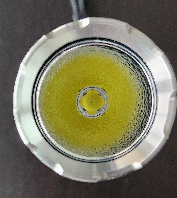 I’m not doing white wall beamshots any more, but I did notice a rather yellowish corona around the hotspot, progressing well into the mid-spillbeam range on my sample. You see it even in the simple desktop shot above. In practice though, it is really only noticeable on a white wall though. This is a common occurrence with XHP70.2 emitters.