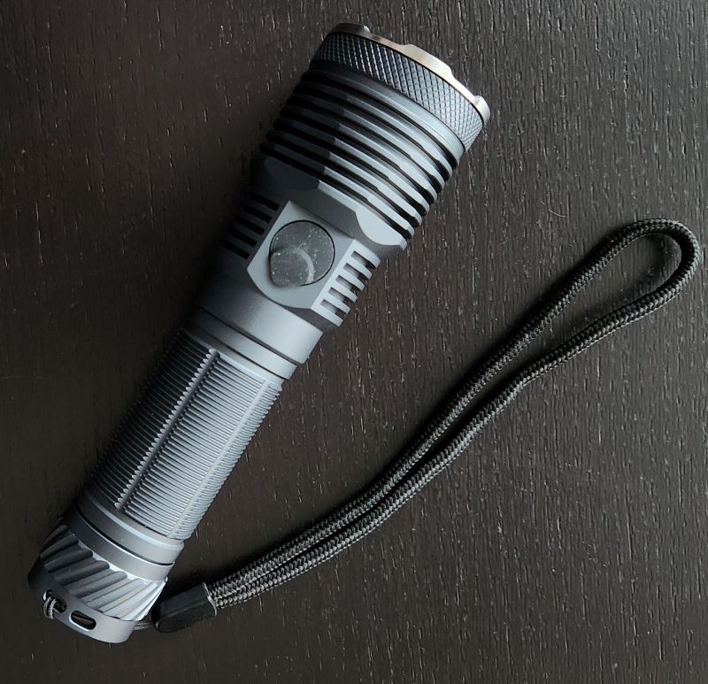 The M21F is a general-purpose style flashlight, with moderately high output and reasonable throw, running on a single 21700 battery. Features a decent user interface and good current-controlled circuitry.