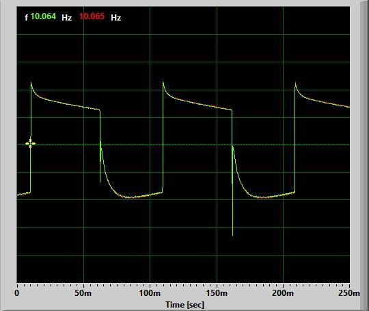 The frequency was 1 kHz on the 10/40% levels, and this is not visible in actual use. I am simply including the scope readings for completeness.