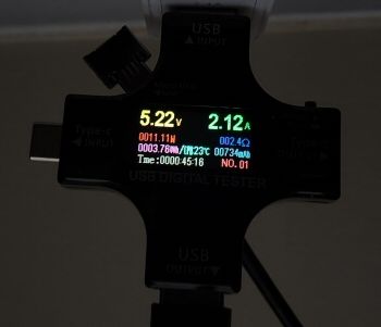 I normally like a two-stage charging feature (i.e., with a lower charging rate for when cells are heavily discharged). But the M21F’s output drops down to a super low mode when the battery is running low, and big red button flashes incessantly, warning you to shut down. In fact, it is actually very hard to get the cell below ~3.0V in this light . As such, this is reasonable compromise to stick with a single high charging rate integrated charger.